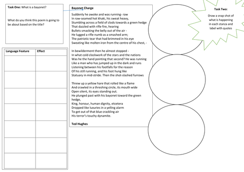 Bayonet Charge Introduction And Language Analysis Worksheet Teaching Resources